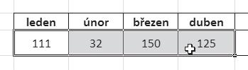 1. Tažením myší vyberte buňky s hodnotami, jejichž vztah chcete vyjádřit v minigrafu. Tento interval bude zdrojem dat pro minigraf.
