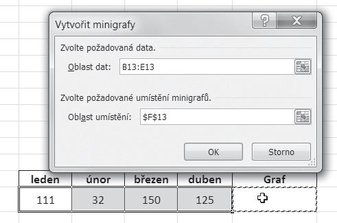 4. Klepněte do buňky, kam chcete vložit minigraf, a v dialogu poté stiskněte tlačítko OK.