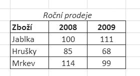 Vytvoření plnohodnotného grafu. Abyste mohli data prezentovat ve formě grafu, musíte mít tabulku s daty – například prodeje nějakého výrobku, nebo výrobků v několika po sobě jdoucích měsících. Tabulka vypadá jako na obrázku. Pak je možné prezentovat vývoj prodejů v čase například pomocí spojnicového grafu. Jeho vytvoření je otázkou několika klepnutí myší: