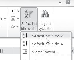 2. Na kartě DOMŮ ve skupině ÚPRAVY klepněte na ikonu nástroje SEŘADIT A FILTROVAT.