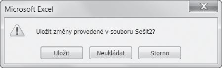 Ukončení práce v Excelu. Okno programu Excel můžete po ukončení práce zavřít pomocí křížku v pravém horním rohu celého okna Excelu. Pokud jste práci v některém z otevřených sešitů neuložili, Excel vás k tomu vyzve, stiskněte proto tlačítko ANO a proveďte uložení sešitu.