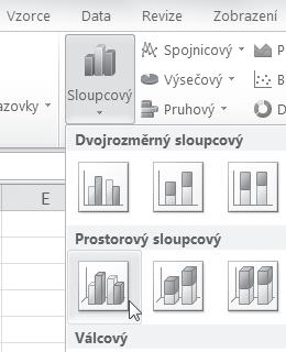 2. Na kartě VLOŽENÍ klepněte na skupině GRAFY na typ grafu SLOUPCOVÝ, případně na jiný, jímž chcete data z tabulky reprezentovat. V rozbalené nabídce zvolte konkrétní podobu grafu.