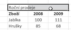 1. Tažením myší vyberte všechny buňky, které chcete sloučit do jedné. V jedné z těchto buněk se může nacházet samotný nadpis tabulky.