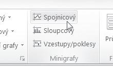 Vytvoření minigrafu. Minigraf je malý graf zobrazený v jediné buňce. Jeho smyslem je znázornit vývoj dat v čase, nebo vzájemný poměr dat mezi sebou. Stačí mít vedle sebe několik buněk s čísly a můžete je prezentovat ve formě minigrafu. Vytvoříte jej takto: