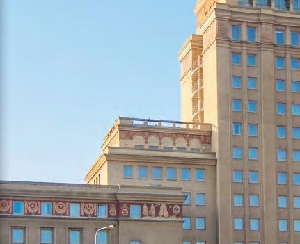 i interiér plný maleb, fresek, reliéfů a vzácných gobelínů od našich předních umělců, jako byli například Max Švabinský nebo Cyril Bouda. Jeden z nich, gobelín Praga Regina Musicae umístěný ve vstupní hale, skrývá unikát, a to Stalinův pomník na Letné ve středu díla. S pádem Stalinova kultu padl rozkaz pomník ze všech děl odstranit, ale pod svícnem bývá nejvíce tma, a tak se na tento zapomnělo. Na zakázku vyráběný interiér z mramoru, vzácného dřeva, kovu a skla se z větší části podařilo zachovat. Zmizelo však 13. patro, které v moderních hotelech nenajdete. V dobách slávy ukrývalo zimní zahradu plnou cenných rostlin.