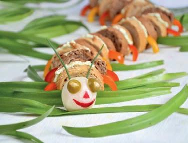 V kapitole U vody na svých chuťových pohárcích pohoupete plněné tortillové lodičky, vykouzlíte legrační okurkové žabičky nebo stvoříte postrach malých rybiček – zubatou štiku. Na louce dávejte pozor na nebezpečné zmije! Ty naše se ale nevyhřívají na příjemném sluníčku, ale rovnou se pečou nad sálajícím ohněm. Smlsnete si také na slaďoučkých rozkvetlých květinách nebo ochutnáte strakaté palačinkové kravičky.