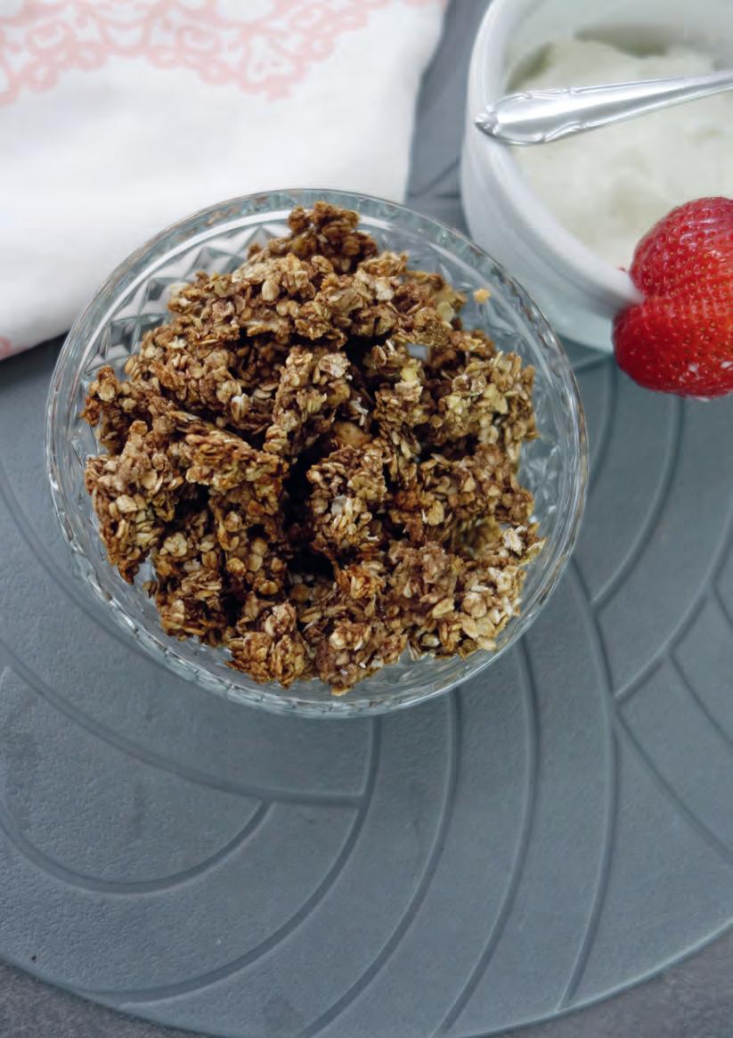 Tip nutriční specialistky: Kupované müsli je plné cukru, nezdravých tuků a přídatných látek. Proto je mnohem vhodnější upéct si své vlastní domácí müsli z poctivých ingrediencí. Fantazii se meze nekladou a do základu z ovesných vloček můžete přidat i další ingredience – například sušené ovoce, nesolené oříšky, kakaové boby nebo vysokoprocentní čokoládu, nastrouhané jablko, skořici a další.