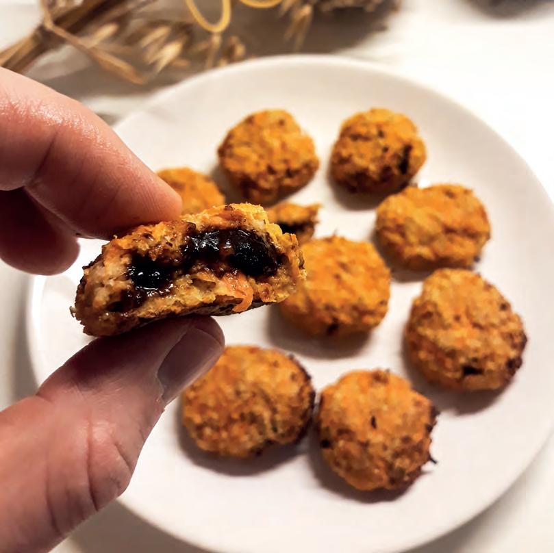 Do mísy si nasypeme 100 g vloček, které pomocí tyčového mixéru rozmixujeme na mouku. Mrkev si očistíme, ostrouháme pomocí škrabky a nastrouháme na jemném struhadle. Nastrouhanou mrkev přidáme k vločkám a přimícháme tvaroh. Vznikne nám hustá konzistence. Následující postup je už snadný. Vždy si vezmeme kousek těsta, z něj si na dlani vytvarujeme malou placku, na placku namažeme trochu povidel a dalším kouskem těsta povidla přikryjeme. Pečeme na 180 °C cca 13 minut. Nejchutnější jsou mrkvánky v den, kdy jsou upečené, ideálně ještě teplé.