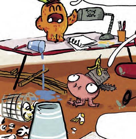 No kým sme sa začali hrať alebo si čítať, mali sme robotu! Musel som si upratať izbu. Nie je jednoduché žiť s desiatimi príšerkami. Vyžaduje si to veľkú disciplínu. A najmä, stále treba udržiavať poriadok, aby človek nevzbudil podozrenie. Našťastie pán Flat so svojím organizačným talentom mi trocha pomohol.