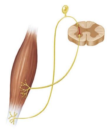Svalové vřeténko je primárním senzorickým mechanismem, který spouští výkonnou koncentrickou kontrakci v plyometrickém pohybu. Dalším smyslovým orgánem svalově–šlachové jednotky je Golgiho šlachové tělísko (obr. 1.3.). Tento proprioreceptor je umístěn ve šlachách; při silném propnutí šlachy vysílá signál k míše, vzniká inhibiční odpověď, která je vedena ke zkrácenému svalu. Činnost Golgiho šlachového tělíska slouží jako ochranný mechanismus, zabraňuje nepřiměřenému napětí a možnému zranění svalu. Tento re exní mechanismus můžeme znázornit u sportovce skákajícího z extrémní výšky, který upadne na zem. Někdy je špatný dopad cestou k rozptýlení sil a zabránění zranění. Důležité je vědět, že oba tyto smyslové orgány hrají důležitou roli v plyometrii, a brát je v potaz při zařazování plyometrických cviků do tréninku, zejména při hledání optimální výšky skoků. Seskok z bedny střední výšky by měl vytvořit dostatek síly k excentrickému natažení svalu, které aktivuje svalová vřeténka a umožní výkonnou koncentrickou