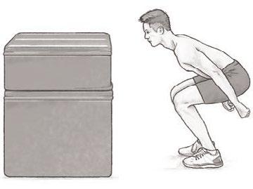 Jedním z nejzákladnějších cviků je výskok na bednu nebo plošinu; trénuje schopnosti koncentrického skoku. Výskok na bednu je přínosný v tréninku výbušné extenze kyčle, kolene a kotníku (tzv. trojitá extenze), dopad není stresující. Výška bedny by měla být ideálně pod úrovní vrcholu vašeho bezpečného výskoku, zároveň takové výšky, abyste dopadli těsně po začátku klesání. Zpočátku můžete vyzkoušet výskok na bednu nebo plošinu ze statické startovní pozice z různě hlubokého dřepu, jako vidíte na obrázku 2.1. Na začátku můžete provést rychlejší skoky na nízkou až středně vysokou bednu s malým stupněm exe v kolenou. Poté zkuste skoky na vyšší bednu z hlubšího dřepu. V obou případech dbejte na rychlý koncentrický pohyb.