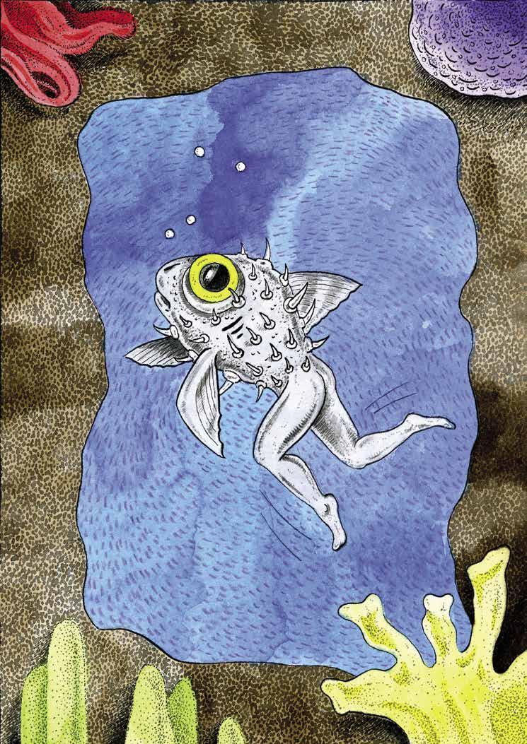 Její jméno je Remora – což znamená „zadržující“. Barvy je šedé a kolem hlavy a krku má kroužky s trny . Těmi se přisává k lodi! V přední části těla má ploutve, ale v zadní svalnaté nožky, velmi silné a pevné . Oči této ryby jsou obrovské a kulaté . Síla Remory je tak veliká, že udrží loď na místě, třebaže zuří bouře .