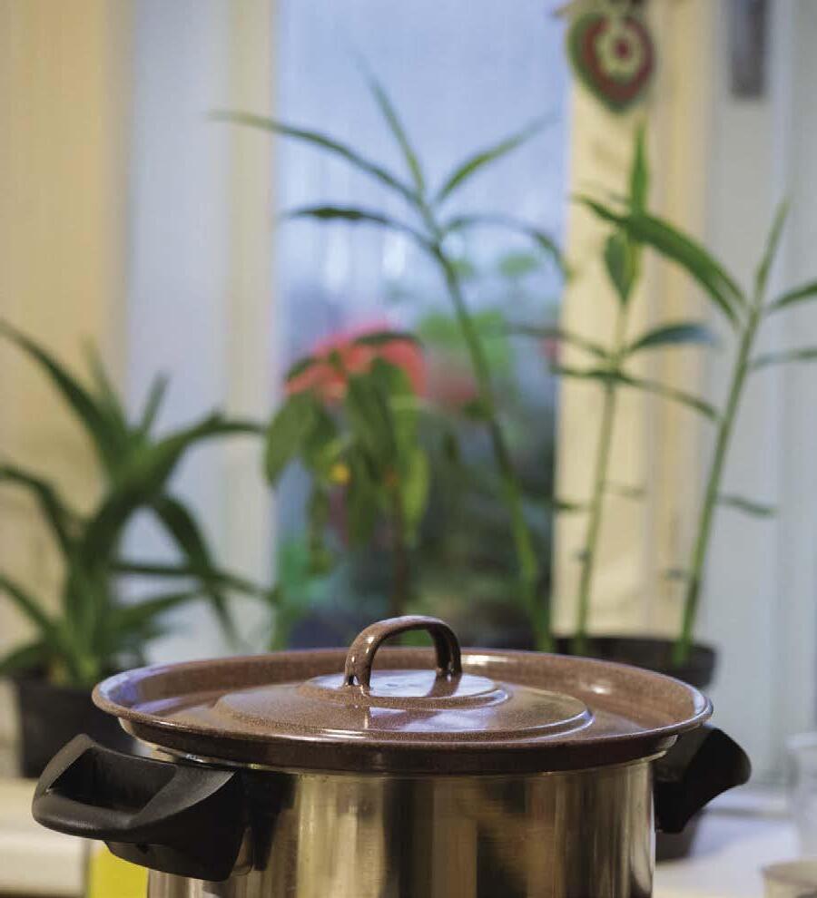 Od zápraží je přes dvůr s ovocnými stromy a dřevěný plot vidět do zahrady, pak na louku a ještě dál k lesu. Přímo tady se paní Jaroslava narodila. Bývala to vesnická hospoda i šenk, místo, kde se lidé scházeli. A vyrostla tady i Irča, souputnice a fotografka téhle knížky. Králíkárna, kurník, vůně spadaných jablek a psí bouda na dvoře mi připomněly léta dětství a tetičku Boženku z Manětína. Moji dva psi – Sulťa a Žofka – museli dnes zůstat v autě před brankou. Žofka zrovna hárá, Sultán je provokatér… a za plotem hlídá pes Fido. Jsme u paní Jaroslavy, Irčiny maminky, která mi už dlouho vzkazovala, že až někdy přijedu, něco dobrého uvaří. Tak je to tady.
