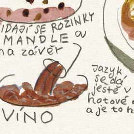 POZNÁMKA: Říkalo se, že vaříme pro čtyři, ale já byl přejedený a myslím, že toho bylo přinejmenším pro šest lidí. A ještě mě trochu zmátly ty pojmy jako „vývar“, „polévka“ a pak ještě jednou „vývar z jazyka“. Polévkou se myslí hovězí vývar, který je třeba udělat předem, a pak si ponechat ještě během vaření těch pár naběraček vývaru z jazyka. Nakonec koukám, že tenhle recept vůbec není legrace. Dokonce i Irčina maminka, paní Jaroslava, občas při vaření koukla do taháku.