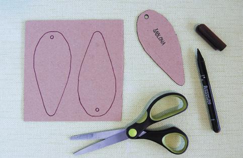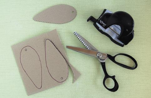 Šablonu přiložte na karton, obkreslete a vystřihněte zubatými nůžkami. Zubatý okraj zamezí „klouzání“ vlny. Otvor na provlečení natě vytvořte děrovačkou.