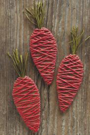 Nyní začněte mrkev pevně obtáčet vlnou všemi směry. Po obmotání zasuňte konec vlny pod navinutá vlákna.