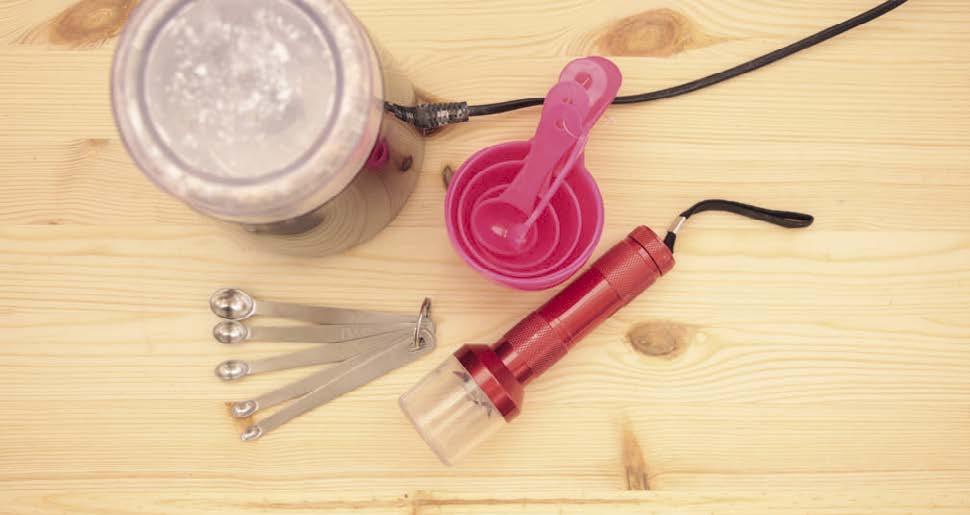 1. Měrné plastové a kovové lžičky – plastové na odměřování větších objemů, kovové na přesné dávkování pigmentů;