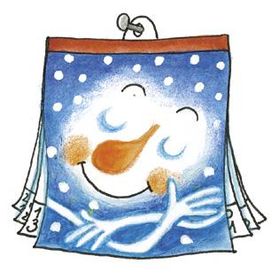 Kuba už neváhá ani chviličku. Najednou mu není ani trochu divné, že svírá v ruce provázek krásných červených bobů. Nasedá a tradá dolů. Sníh je měkký jako peřina. Kubíkova babička s oblibou říkává: „Hodně sněhu v lednu, hodně hřibů v srpnu!“