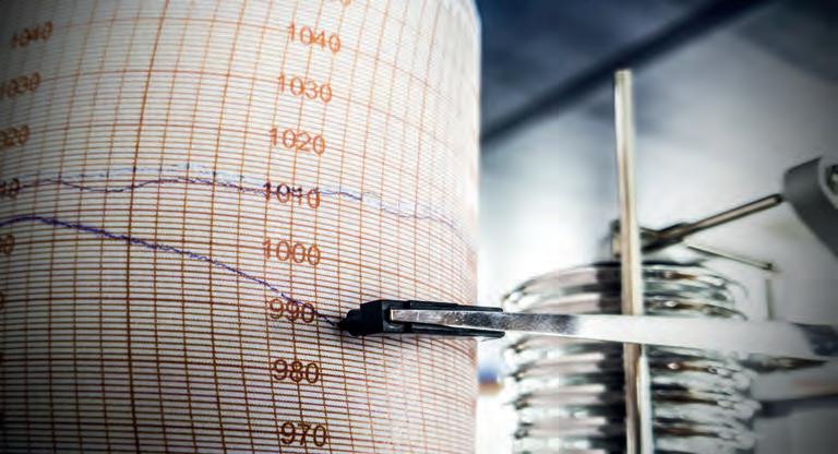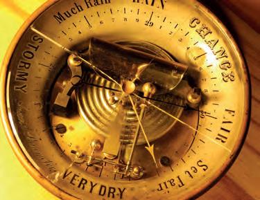 Staré aneroidy naznačovaly na základě tlaku vzduchu možný charakter počasí. Ale pozor, přímá rovnice mezi například vysokým tlakem vzduchu a pěkným počasím neplatí. Víc na str. 28.
