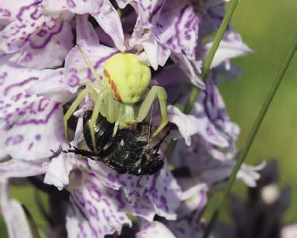 V květech orchidejí můžeme však najít i jiné druhy hmyzu nebo členovců. Ty můžeme rozdělit na náhodné návštěvníky nebo škůdce, kteří požírají zelené části rostlin apod. Tak například v květenstvích kruštíku širolistého oddáleného (Epipactis helleborine subsp. orbicularis) často nacházíme celé kolonie mšic, které rostlinu značně decimují. Dále se zde můžeme setkat s jakýmisi specialisty, kteří využívají květů orchidejí jako úkryt, ve kterém číhají na kořist. Do této skupiny patří nejčastěji pavoukovci z čeledi běžníkovití (Thomisidae), kteří vlastně jednoduše využívají k přivábení kořisti lákadel květu orchideje. Pozorovali jsme například běžníka Misumena vatia na prstnatci plamatém (Dactylorhiza maculata) přímo v akci při ulovení včely nebo běžníka Misumenops tricuspidatus na střevíčníku pantoflíčku (Cypripedium calceolus). Poslední zmíněný běžník seděl na květu při zadní části pysku, ve které se také nachází úniková cesta pro opylovače z jakési pasti, kterou pysk střevíčníku vytváří. Tento běžník dokonale napodobuje svým zbarvením květ hostitelské rostliny. Zajímavostí je jistě i to, že jsme tohoto pavouka v té samé rostlině pozorovali několik let po sobě.