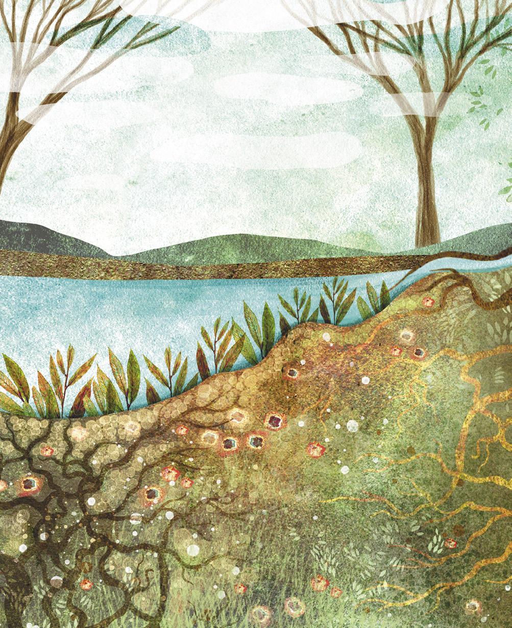 Dokud táta chytá ryby, Filípek si hraje na lesního skřítka. Les je jeho skrýš.