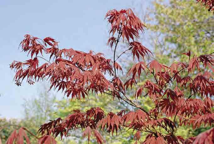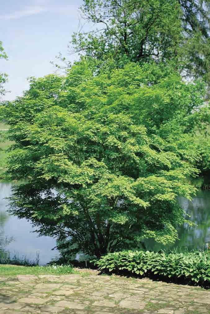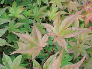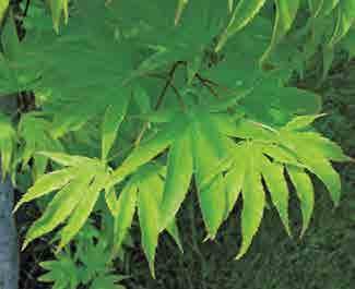 A. shirasawanum Koidz., j. shirasawanský; keř nebo keřovitý stromek až 15 m vysoký, podobný A. palmatum, větve