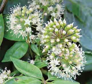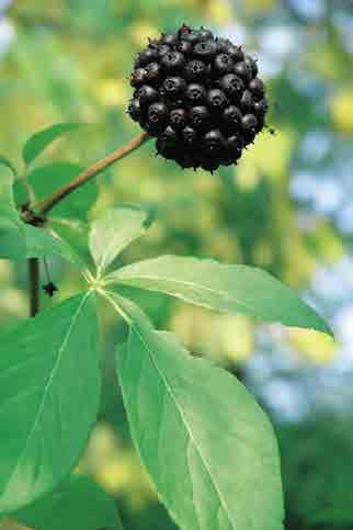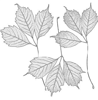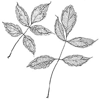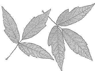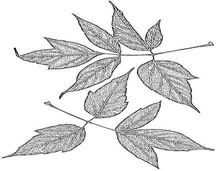 eliptické nebo obvejčité, 10–15 c m, řapíčkaté, jemně pilovité, na podzim tmavě žluté; květy světle zelenožluté až žluté, ojediněle také růžové, trubkovité, v sametově chlupatých a poměrně řídkých latách 10–15(–22) cm, korunní lístky nestejné, tyčinek 7 a jsou kratší než korunní lístky, V–VI; plody kulovité, bez ostnů, 5–6 c m tlusté; Severní Amerika; {Z3–7}