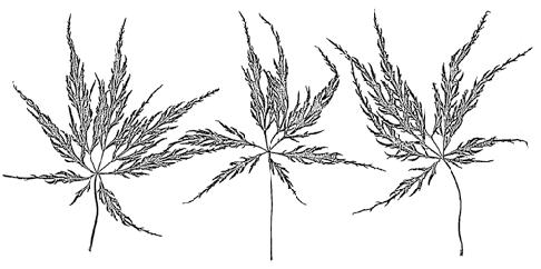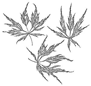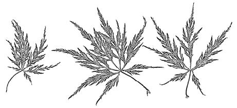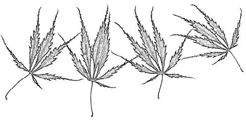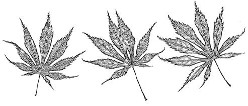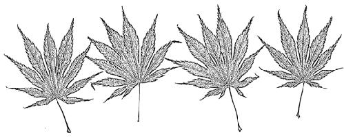 ‘Palmatifolium’; velký keřovitý stromek 6–8 m vysoký nebo vyšší a asi stejně široký; listy asi 10 cm velké, 11laločné, hlouběji rozeklané, téměř až k bázi, špičky laloků jsou úzké a ostré, okraj pilovitý a slabě dolů stočený, na podzim nápadně svítivé, šarlatové a oranžové až zlatožluté