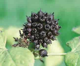 kud lesklé, řapíky až 23 cm; květy kalně světle červené a žlutě tečkované, v hustých, jehlancovitých, vzpřímených latách 12–20 cm, V; plod kulovitý, málo ostnitý, 3–4 cm široký; {Z4}