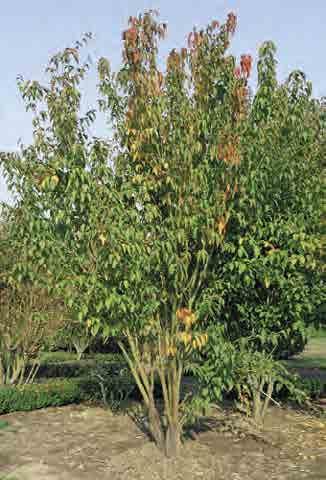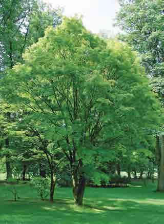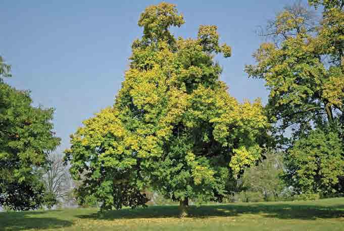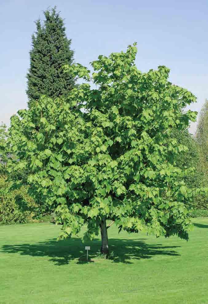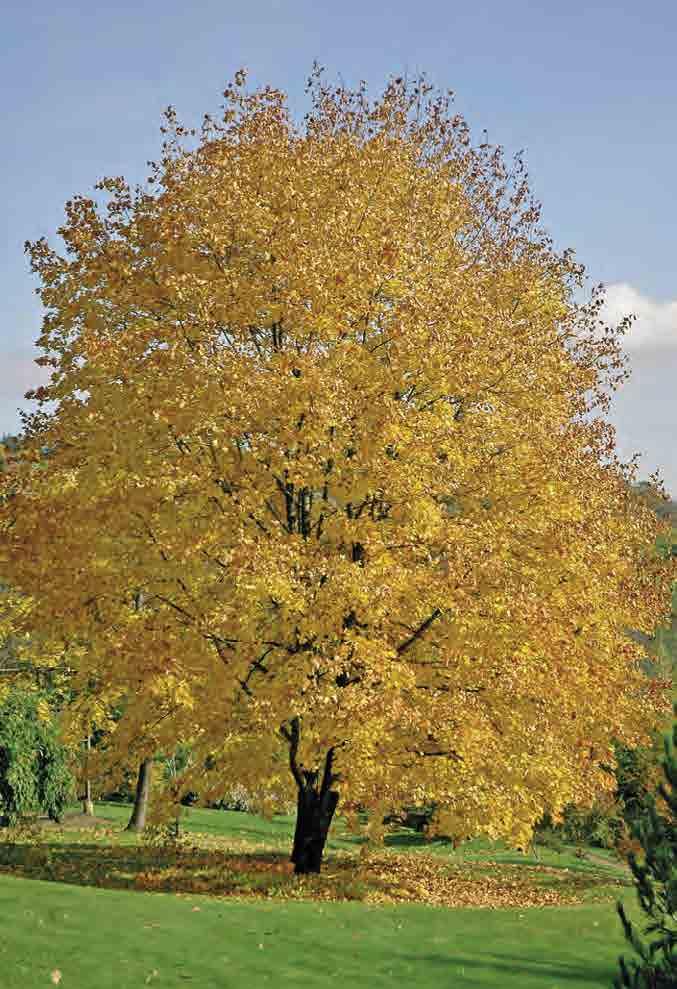 ‘Green Mountain’; široce pyramidální strom 10–12 m v ysoký a 6–8 m široký; listy tmavě zelené, kožovité, na podzim oranžové a šarlatové