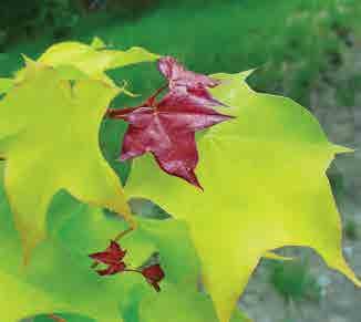 ‘Friderici’; listy při rašení bělavě žluté, později trvale zlatožluté, řapík a žilky červené