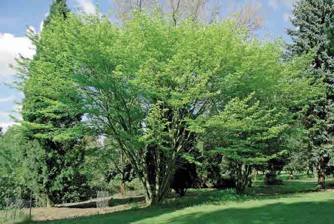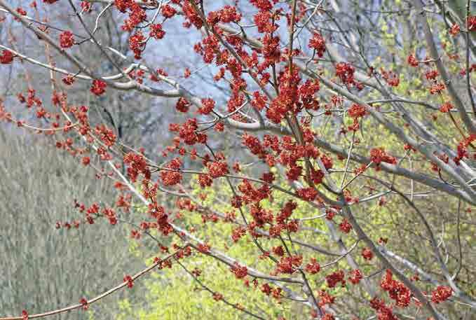 Nápadně zbarvené kmínky a větve mají například některé javory (Acer), velmi