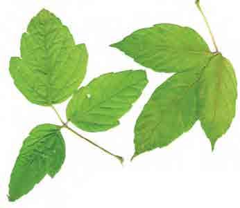 A. triflorum Kom., j. tříkvětý; vzpřímené až stromkovité keře, letorosty mají mnoho malých lenticel; listy 3četné, lístky (podlouhle) vejčité, podlouhlé až (ob)kopinaté, 3–7 cm, celokrajné nebo s několika velkými zuby, na podzim velmi nápadně zlatožluté a oranžové; kvete vzpřímenými chocholíky do 3 cm velkými, květy žluté, V; nažky 35–45 × 13–20 mm velké; Korea, Mandžusko, Čína; {Z4–7}