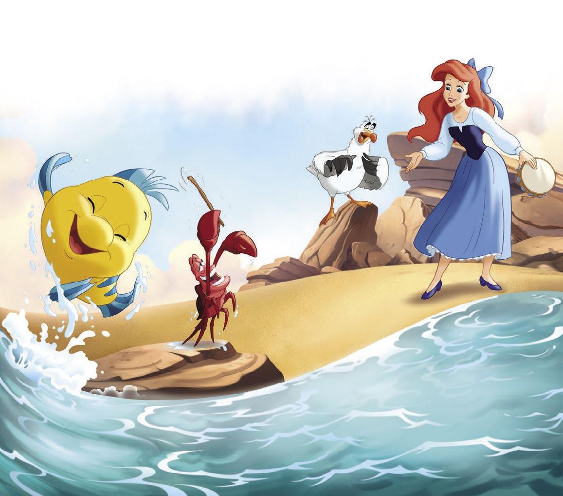„Zní to jako mušle, které na sebe narážejí při příboji,“ řekla Ariel prodavači. Koupila si krásnou tamburínu a spěchala domů, aby ji ukázala rackovi.