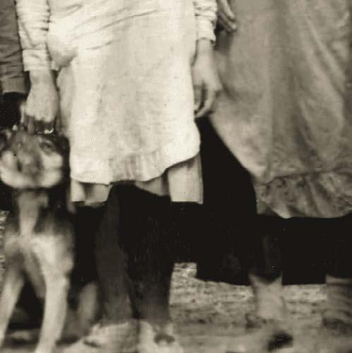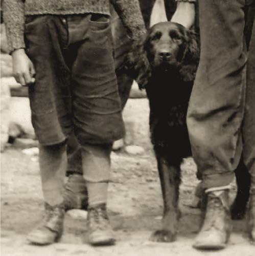 Prastrejda Pepík, nejvyšší kluk v první řadě s rádiovkou, se sousedy a psem v Mlčechvostech