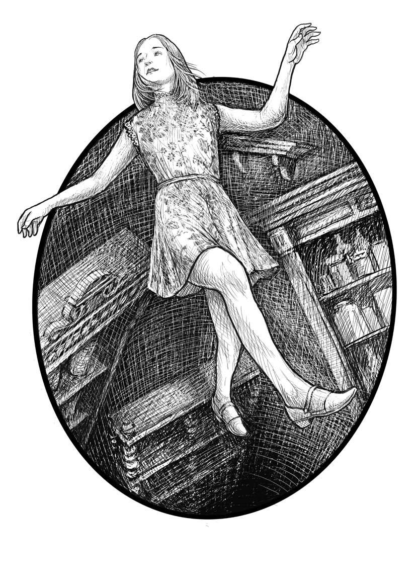 The rabbit-hole went straight on like a tunnel for a while, but then it went suddenly down. So suddenly that Alice didn’t have a moment to think about stopping. And she found herself falling deep into the ground. It was a very strange hole. Either it was very deep, or Alice was falling very slowly, because she had time to think and to look around her. She tried to look down and figure out what was going to happen next, but it was too dark. She couldn’t see anything below her. But when she looked at the sides of the hole, she could see cupboards and bookshelves. Here and there she saw maps and pictures on the walls. She had time to take down a jar from one of the shelves. “Orange marmalade! Yummy!” thought Alice to herself. “But it’s empty.” She was very disappointed, but she didn’t want to drop the jar because she had no idea what or who could be below her. So, she put the marmalade jar back in a cupboard lower down.