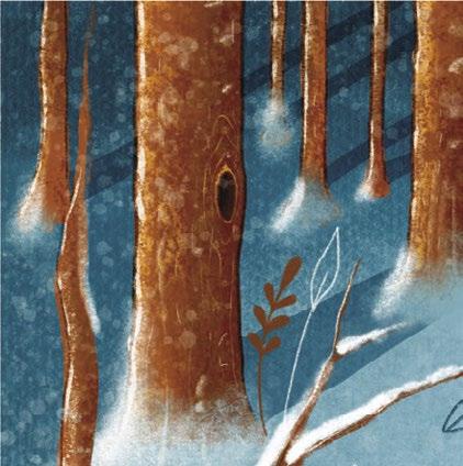 „Co… co… co to je?“ podivila se, když čumáčkem narazila na cosi mokrého a studeného. Ranní sluníčko se odráželo od sněhových krystalů a oslepovalo ji tak, že skoro nic neviděla. Vystrašeně zatřásla hlavou a sklepala ze sebe jemný poprašek. Konečně se jí podařilo otevřít oči. Všechno okolo bylo bílé. Malvínka nechápavě zakroutila hlavou. Něco takového ještě v životě neviděla. A jak by také mohla? Tohle byla její první zima v životě.