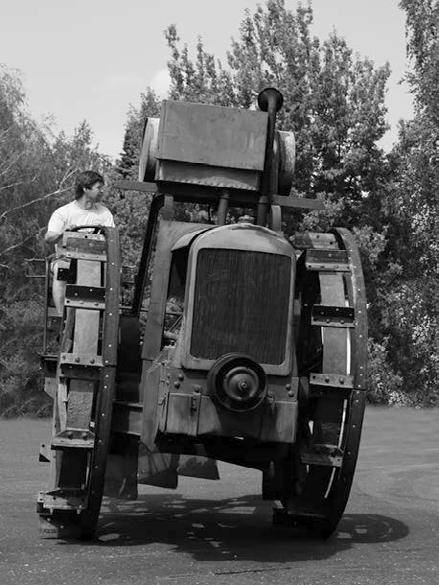 motorovém pluhu Excelsior P 5 je vidět rozdílné uložení hnacích kol