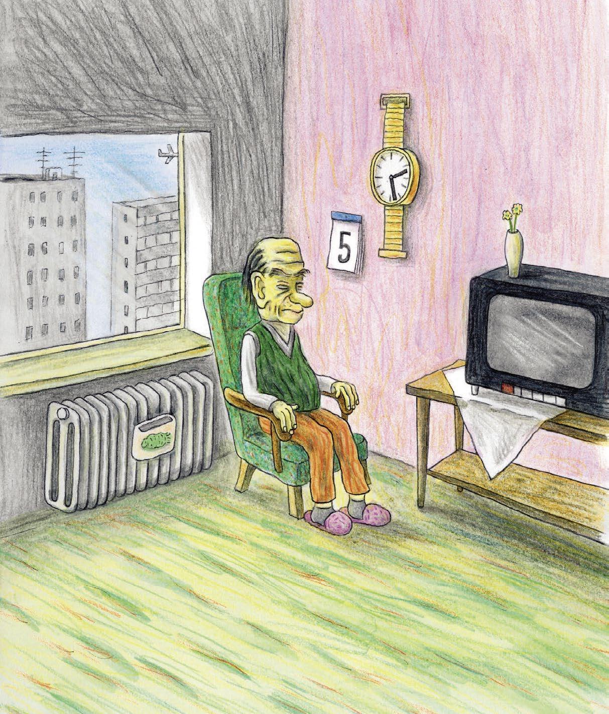 „Aproč? Abyste tam byl sám jako kůl vplotě?“ oponovala jeho hodná snacha. „Tady máte rodinu! Vnoučata! Jazykové kurzy! Splachovací záchod! Městskou hromadnou dopravu!