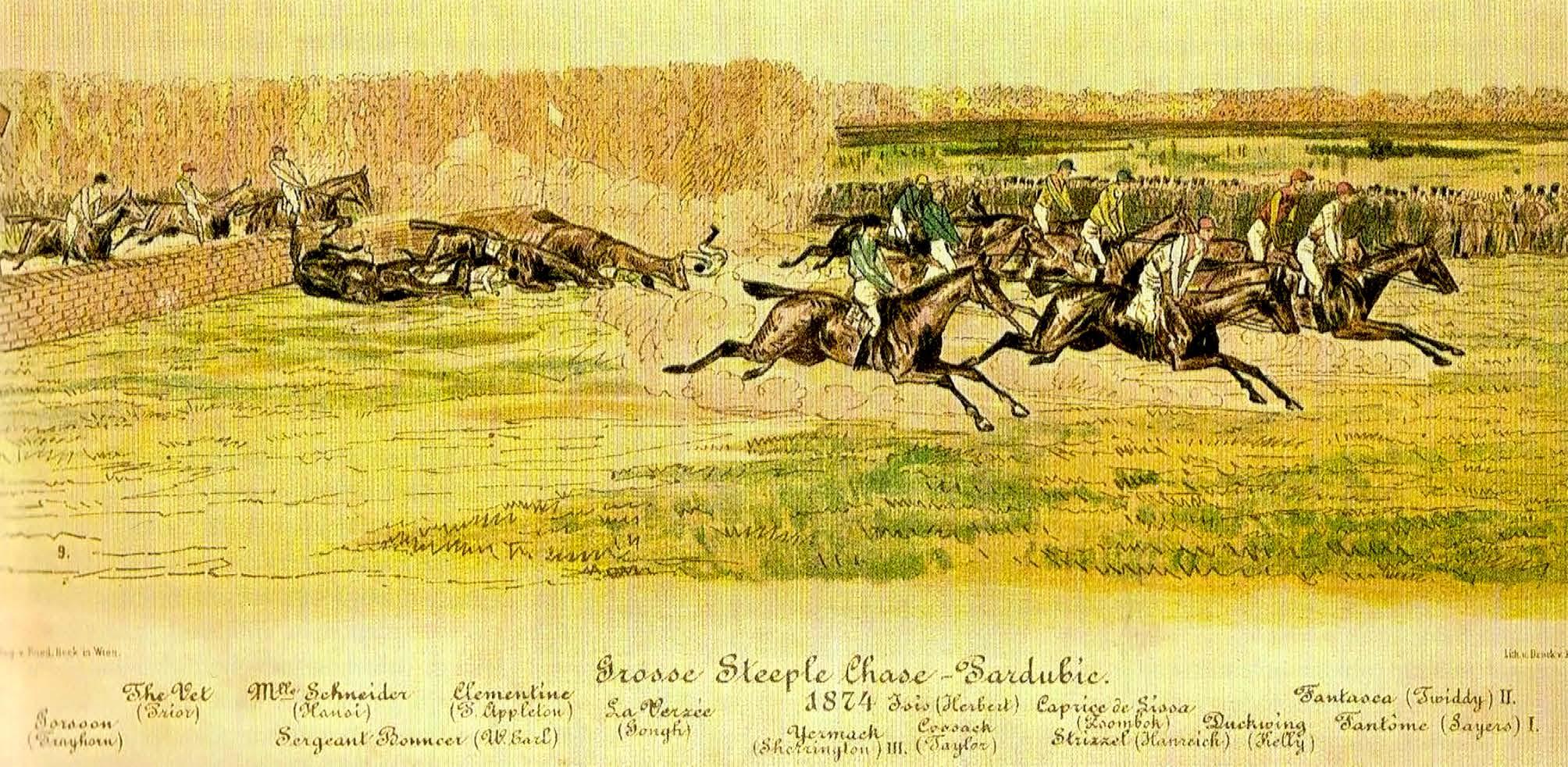 Oktavián Kinský uvažoval trochu jinak a velmi dobře si uvědomoval, že on koně schopného v Aintree uspět prostě nemá. O to usilovněji se snažil, aby podobně velký překážkový dostih mohl být uspořádán u nás, ale do jeho plánů zasáhla válka v roce 1866.