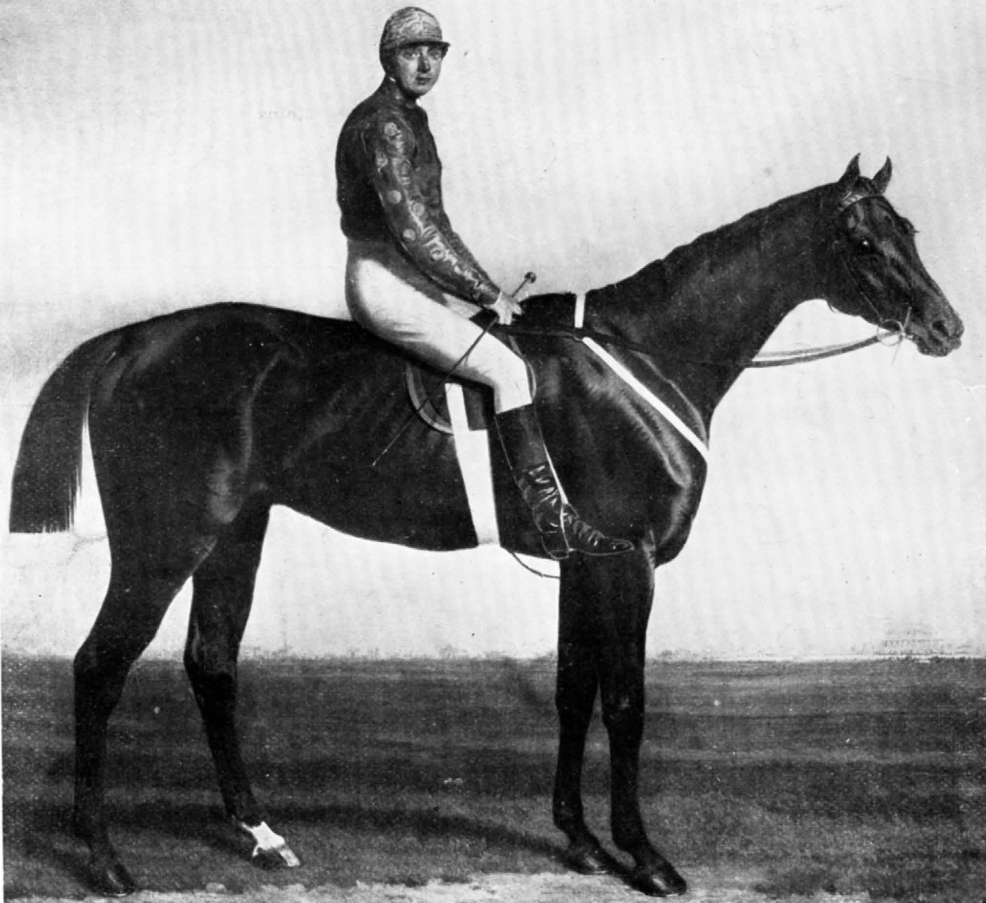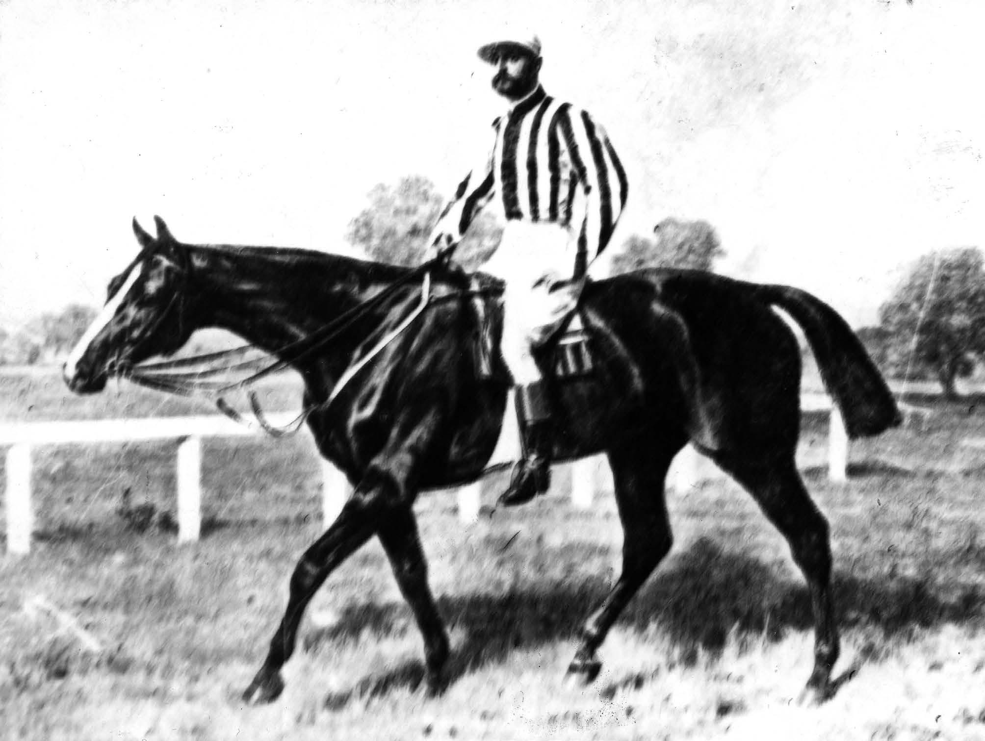 Hrabě Zdenko Kinský v sedle klisny Juno, s kterou obsadil druhé místo v roce 1880. (archiv autora)