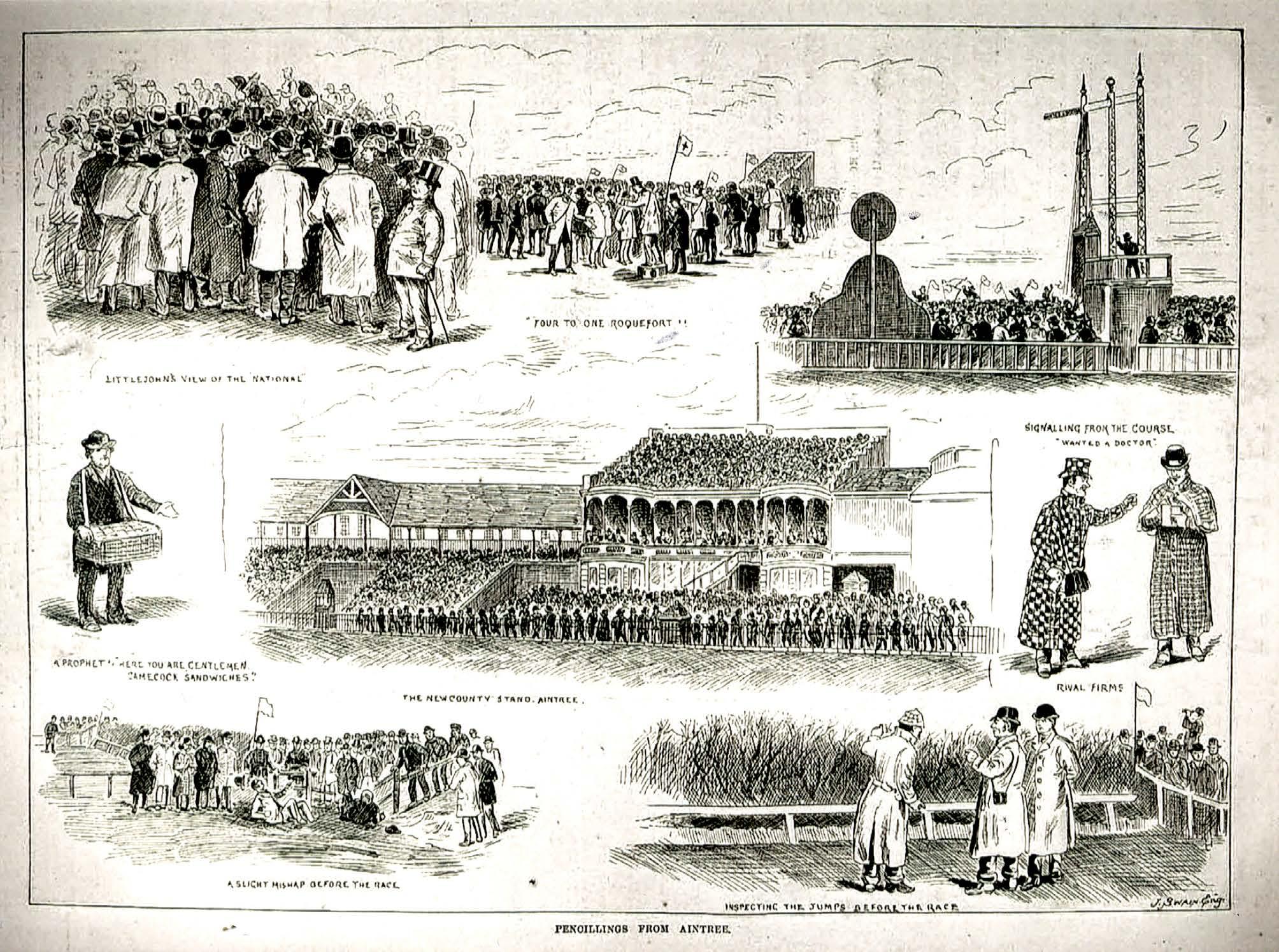 Atmosféra na závodišti v Aintree v roce 1887 (archiv autora)