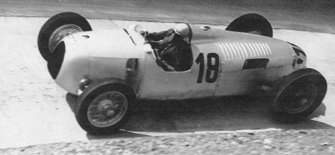 Bernd Rosemayer s Auto Unionem typ C v závodě do vrchu Eifel v červnu roku 1937. Dojel na prvním místě stejně jako v roce 1936. předchozí strana nahoře