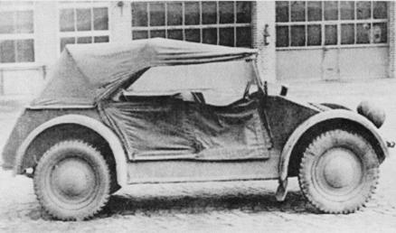 V roce 1939 vznikl prototyp označený jako KdF Typ 82 s větší světlou výškou, upravenou přední klikovou nápravou, redukčními převody v zadních kolech, samosvorným diferenciálem ZF a ocelovou krabicovitou karoserií. K pohonu sloužil vzduchem chlazený ležatý čtyřválec o objemu 985 cm3, který byl v roce 1943 navýšen na 1 131 cm3, takže výkon přenášený pouze na kola zadní nápravy prostřednictvím nesynchronizované čtyřstupňové převodovky vzrostl z 24 na 25 k (18,4 kW) při spotřebě paliva 8 litrů na 100 km. Vůz s vnějšími rozměry 3 740 × 1 620 × 1 720 mm vážil 750 kg a dosahoval rychlosti 80 km/hod. Vzhledem k tomu, že se jednalo o automobil určený do bojových podmínek, měla jeho palivová nádrž objem 40 litrů oproti 25litrové nádrži civilního KdF.