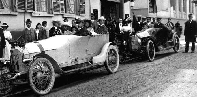 Dva vozy Austro-Daimler ADS-R Sascha. Za volantem prvního vozu sedí pozdější legendární manažer týmu Mercedes Benz Alfred Neubauer, v druhém hrabě Alexander „Sascha“ Kolowrat-Krakovský. následující strana