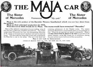 a svoji první konstrukci automobilu poháněného spalovacím motorem měl připravenou už v roce 1906. Cestovní automobil poháněný čtyřválcem o výkonu 30 k (22 kW) se představil na Mezinárodní automobilové výstavě ve vídeňském Parkringu a podle dobového tisku se jednalo o senzaci, především díky čtyřstupňové převodovce „Diamant“ doplněné o zpátečku a volnoběh. Řadicí páčka umístěná na volantu se prý dala ovládat dvěma prsty. Vůz dostal jméno Maja, podle druhé dcery Emila Jellineka, ale výroba vozu nesoucího její jméno byla ani ne po roce ukončena kvůli neřešitelným problémům s příliš komplikovanou převodovkou. Naproti tomu jméno druhé dcery Emila Jellineka ve spojení s německou automobilkou