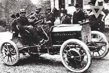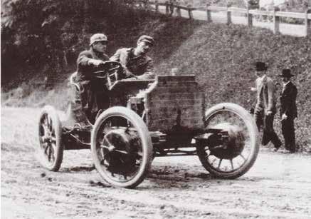 Ferdinand Porsche s elektromobilem LohnerPorsche na Semmeringu v roce 1900. předchozí strana nahoře
