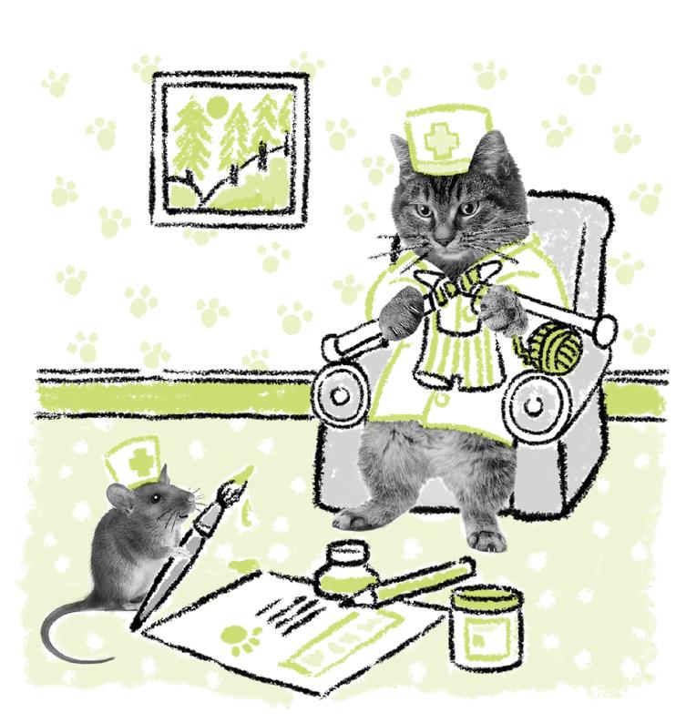 a starostlivá mačička, ale Piškótka nebola nadšená jej záľubou v pletení. Dúfam, že to nebude pre mňa! pomyslela si.