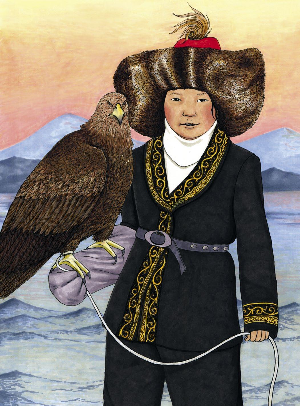 Aisholpan a žilo v chladnom pohorí Altaj. Celých sedem generácií muži v jej kmeni lovili pomocou orlov skalných, aby ich rodiny mali jedlo a kožušinu.