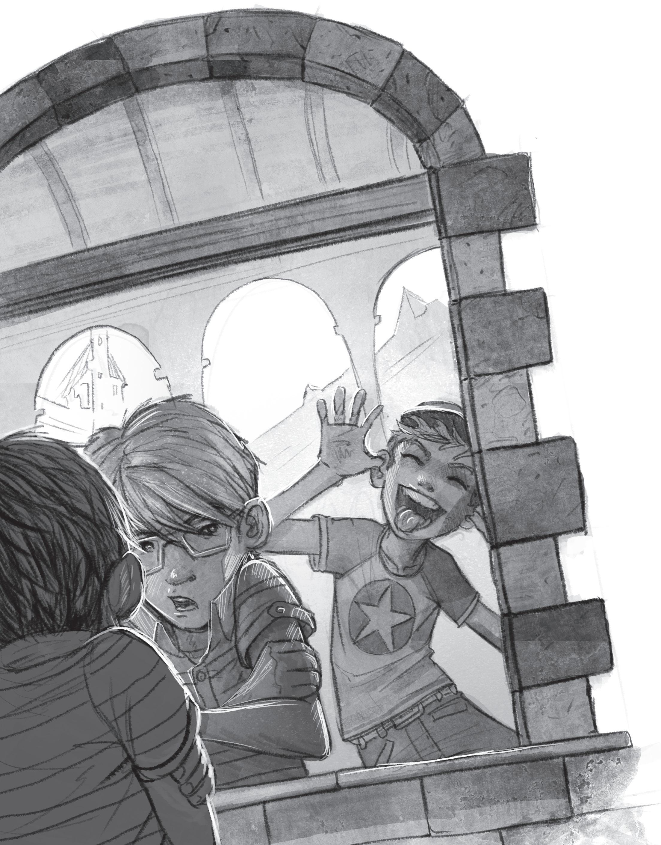 Zarazený Axel ustrnul a premýšľal, či jeho kamarát nemá náhodou oči na zátylku. Lilo mlčky ukázala na sklenenú tabuľu výkladu, vedľa ktorej chlapec stál. Vyzerala ako obrovské zrkadlo a ukazovala Dominikovi, čo sa za ním deje.